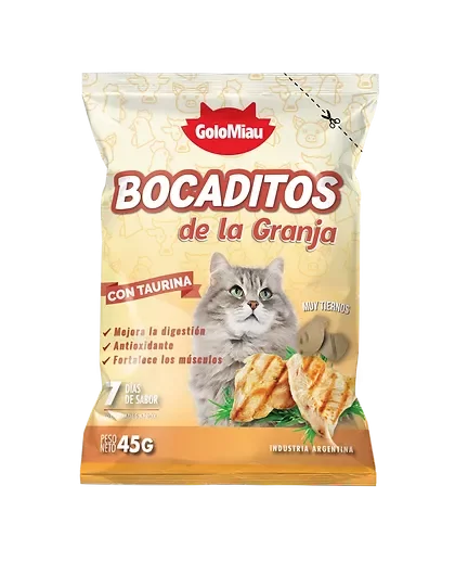 Bocaditos semihúmedos y blanditos sabores del Mar y pollo. Además cuenta con el aporte de Omega 3, que mantiene el pelo suave y brillante de tu gato, protege las funciones renales, y colaboran al desarollo cognitivo