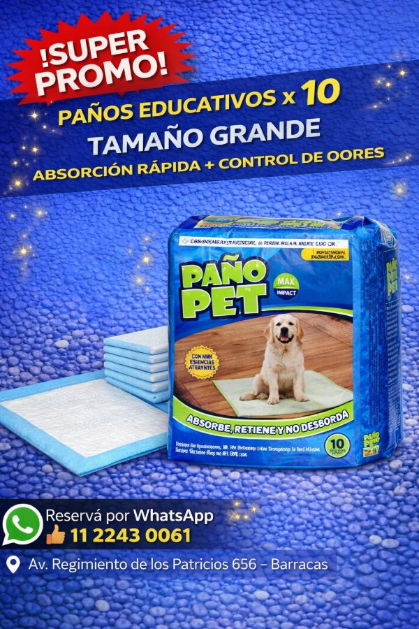 Pañopet COMPACT son alfombras sanitarias DESECHABLES para perros y gatos, ideales para educarlos en su higiene. Con esencias atrayentes similares a feromonas caninas, atraen a la mascota a orinar en ellas. Retienen líquidos, minimizan olores y son hipoalergénicas. Su fórmula única con gel súper absorbente y pulpa de celulosa las hace más esponjosas y cómodas para la mascota